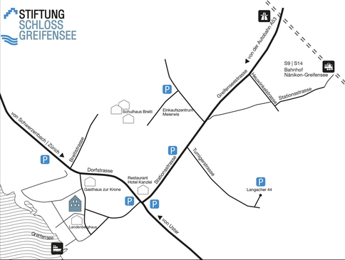 Mit ÖV: Die S-Bahn führt Sie bequem zur Bahnstation Nänikon-Greifensee.